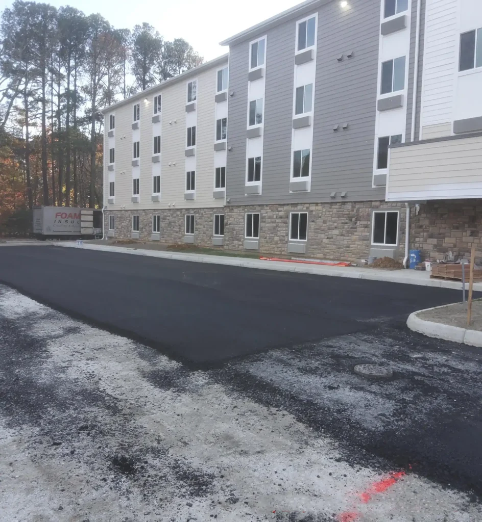 Site construction for a new 12,500 SF Woodspring Suites hotel along a private road in Yorktown. The project included 1,600 SY of pervious concrete to help satisfy Virginia DEQ requirements.